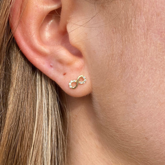 Ear Candy 9ct Gold CZ Infinity Stud Earrings