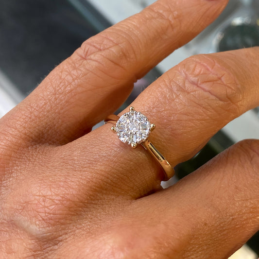 9ct Gold Diamond Solitaire Cluster Engagement Ring