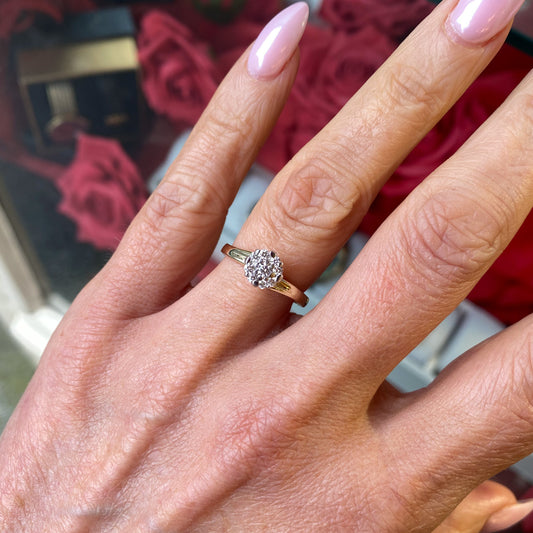 9ct Gold Diamond Solitaire Cluster Engagement Ring | 0.31ct
