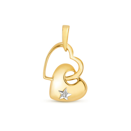 9ct Gold Two Hearts Diamond Set Pendant & Chain