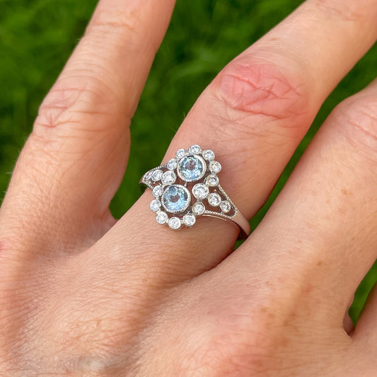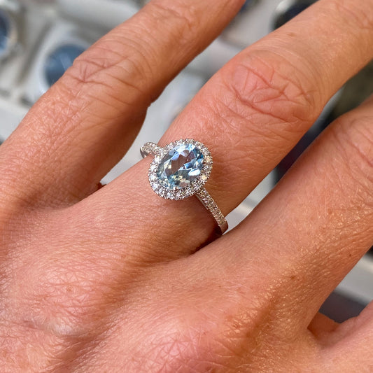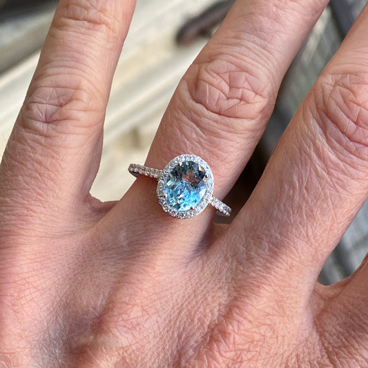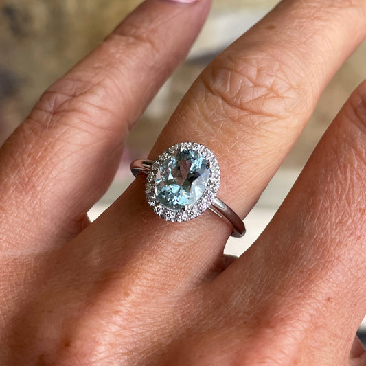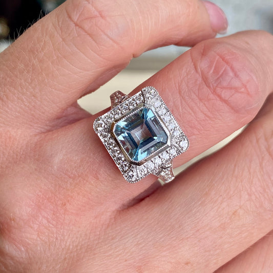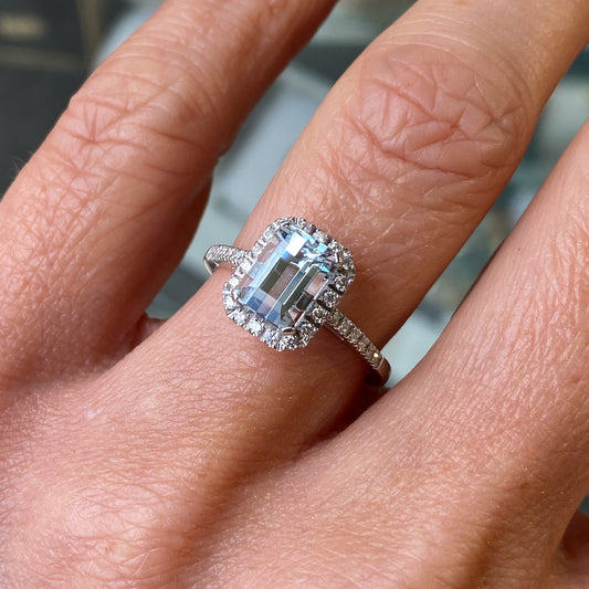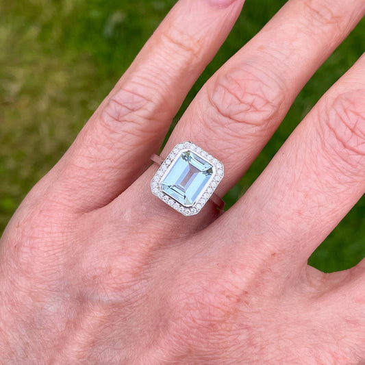 18ct Gold Aquamarine & Diamond Engagement Ring | 1.82ct + 0.63ct