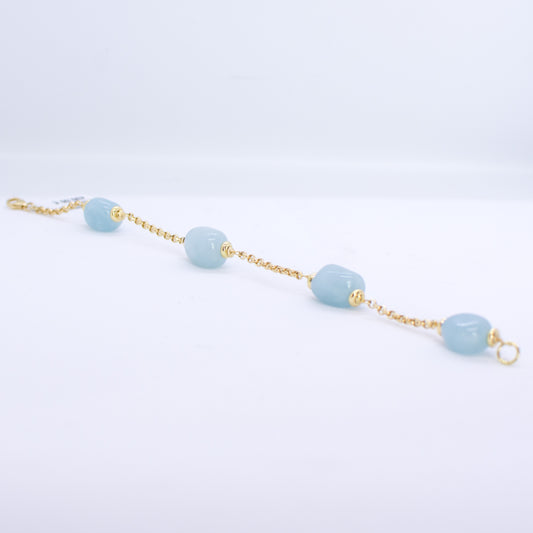 18ct Gold Silky Aquamarine & Chain Bracelet