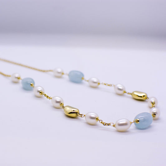 18ct Gold Silky Aquamarine & Pearl Necklace