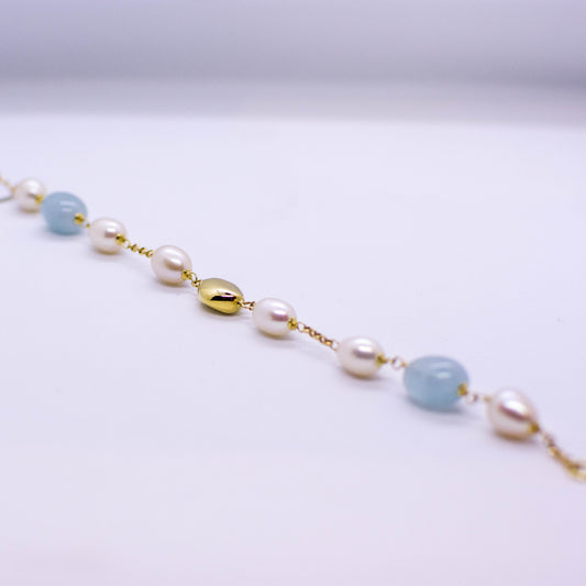 18ct Gold Silky Aquamarine & Pearl Bracelet