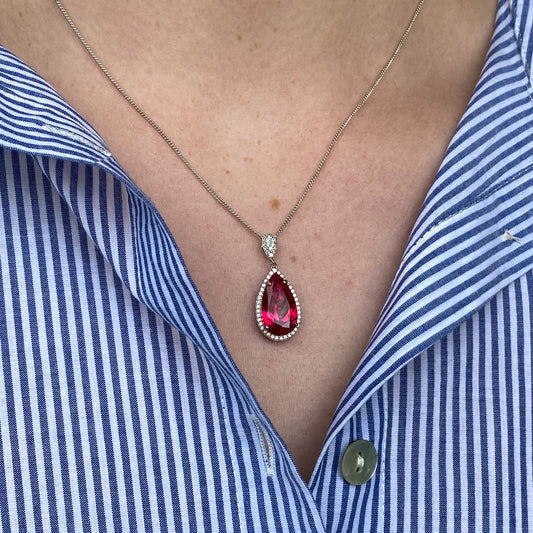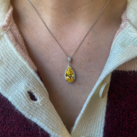 Silver Pear CZ Halo Necklace | Lemon Yellow