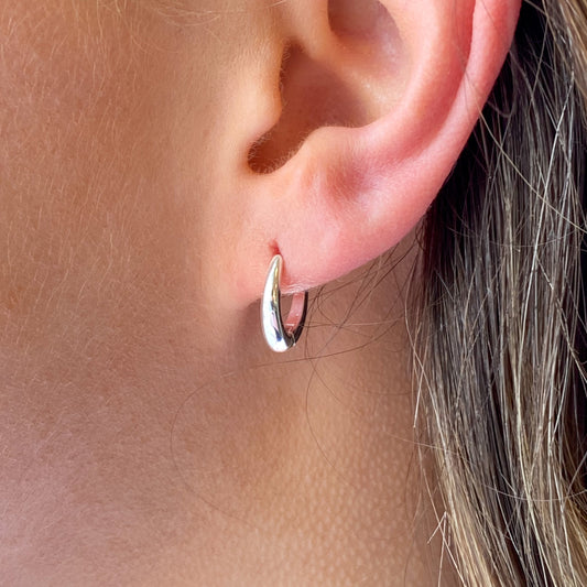 Silver Pointed Huggie Hoop Earrings | 12mm