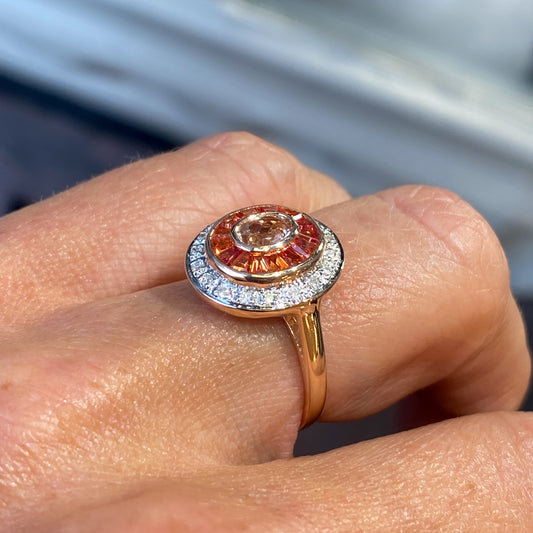 9ct Rose Gold Morganite, Orange Sapphire & Diamond Ring