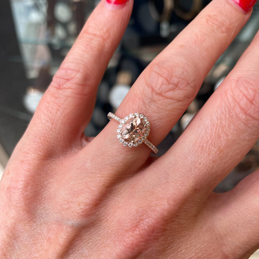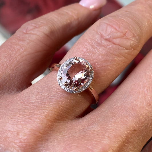 9ct Rose Gold Oval Morganite & Diamond Ring | 1.49ct