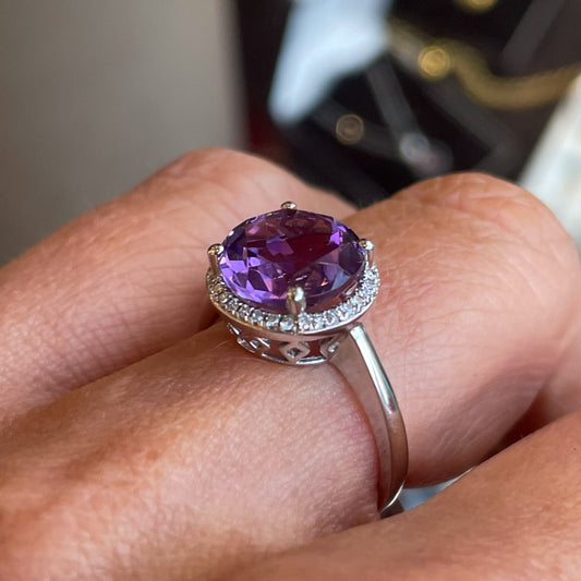 9ct White Gold Amethyst & Diamond Ring