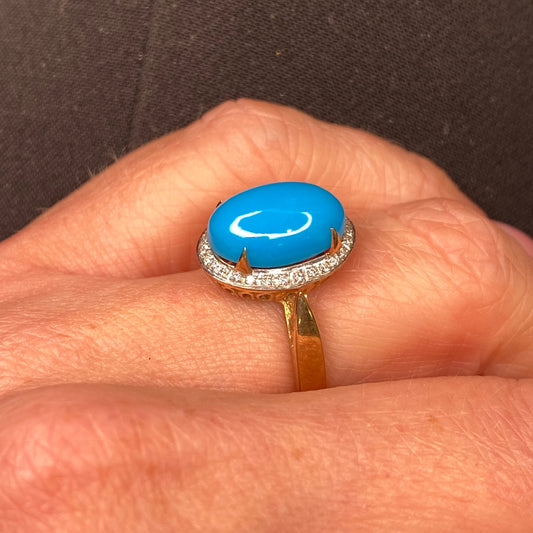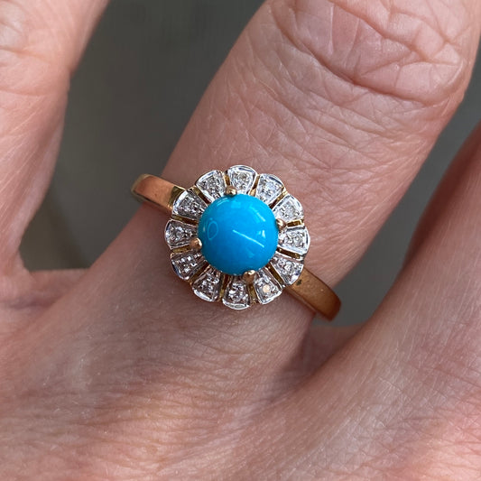 9ct Gold Turquoise & Diamond Ring