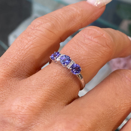 9ct White Gold Tanzanite & Diamond Trilogy Ring