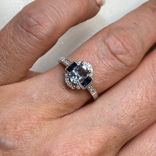 9ct White Gold Aquamarine, Sapphire & Diamond Ring