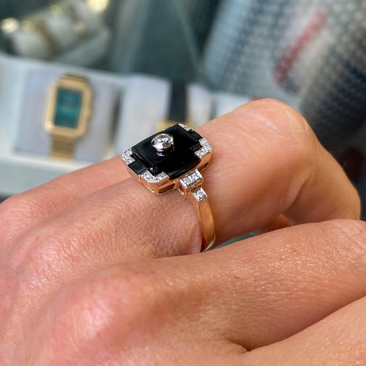 Sold out9ct Yellow Gold Onyx & Diamond Ring