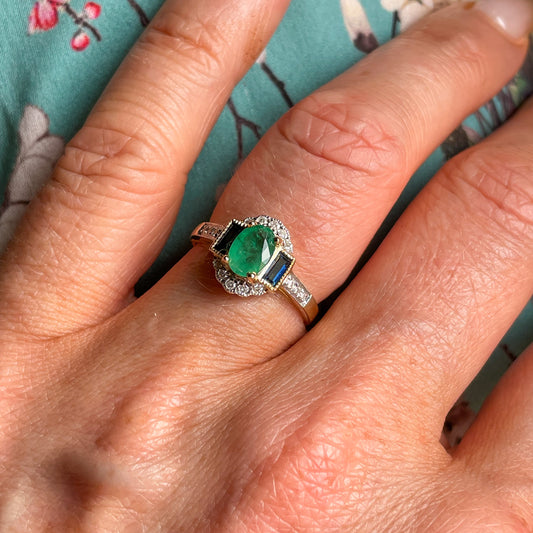9ct Gold Emerald, Sapphire & Diamond Ring