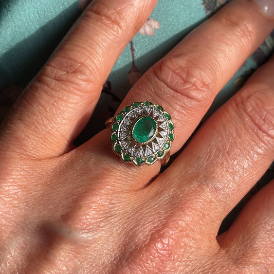 9ct Gold Emerald & Diamond Georgian Style Ring