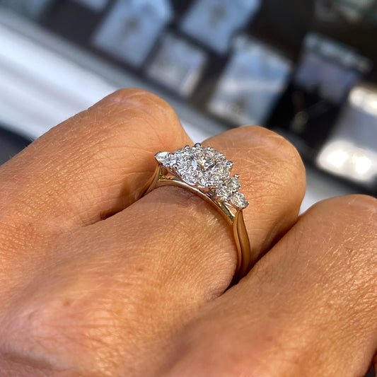 9ct Gold Halo Trinity Diamond Engagement Ring