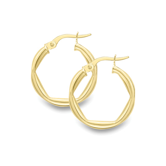 9ct Gold Inner Hexagon Creole Hoop Earrings | 20mm