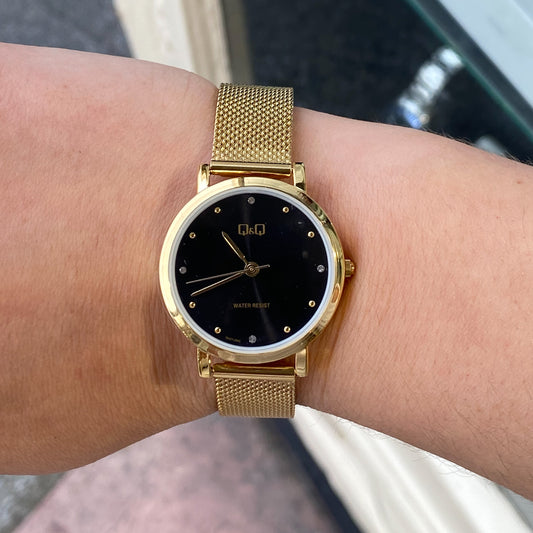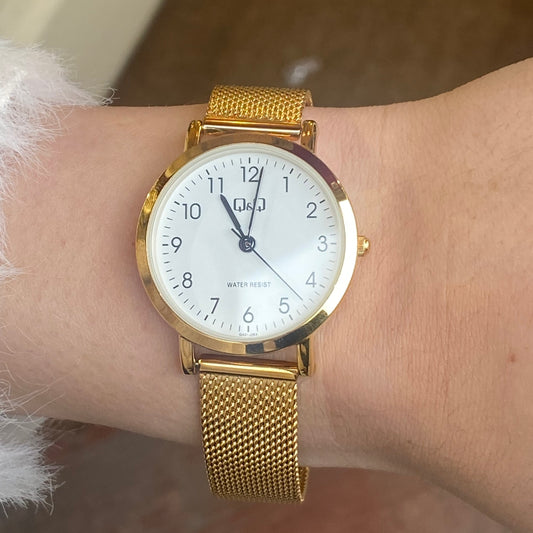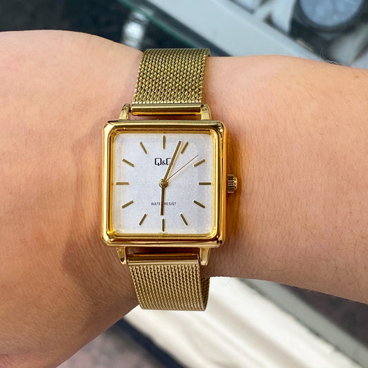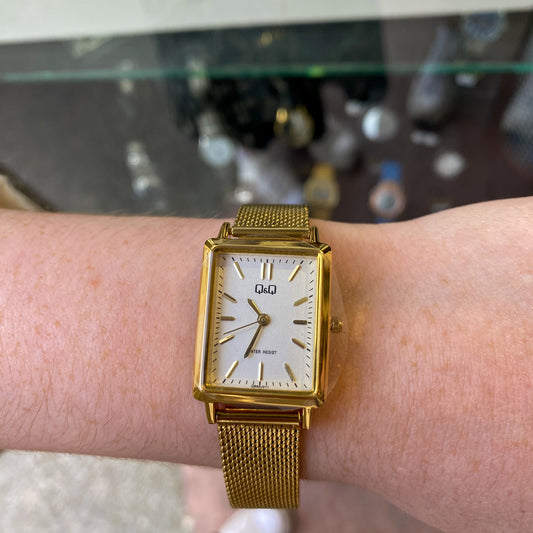 Q&Q Ladies Gold Rectangular Mesh Watch
