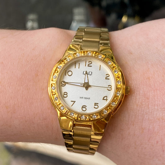 Sold outQ&Q Ladies Gold Three-Link Watch