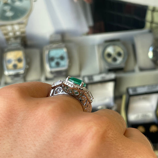 Silver Hydro Green Amethyst & Pink CZ Statement Ring