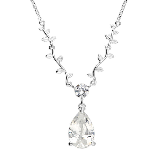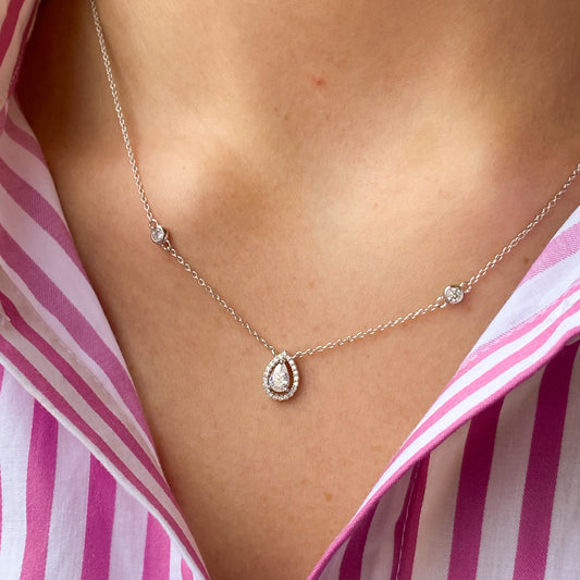 Silver Pear CZ Halo Necklace | Lemon Yellow