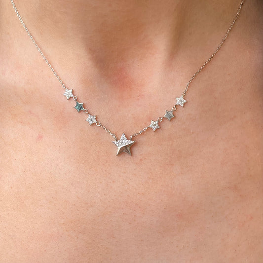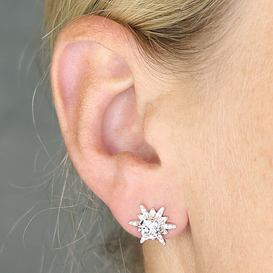 Silver Stellar Crescent Stud Earrings | CZ & Crystal