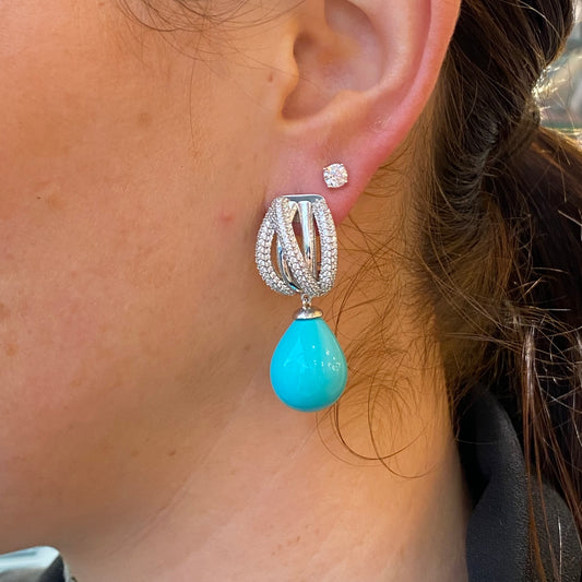 Silver Turquiose Shell Pearl & CZ Drop Earrings | 9x40mm