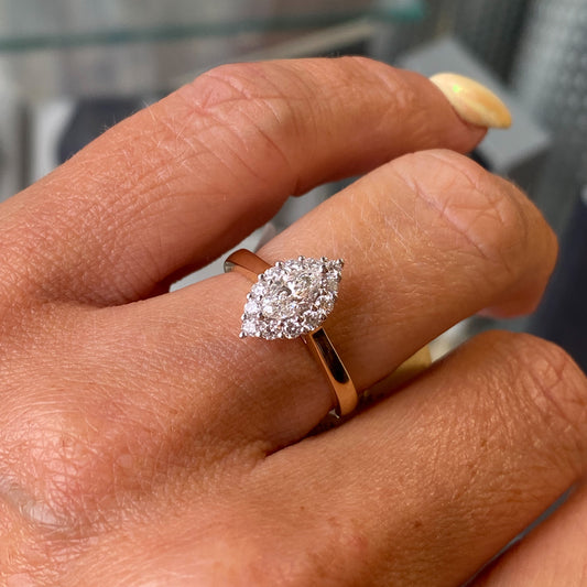 18ct Gold Marquise Halo Diamond Engagement Ring | Certificated