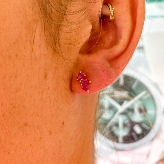 18ct Gold Marquise Ruby Climber Stud Earrings