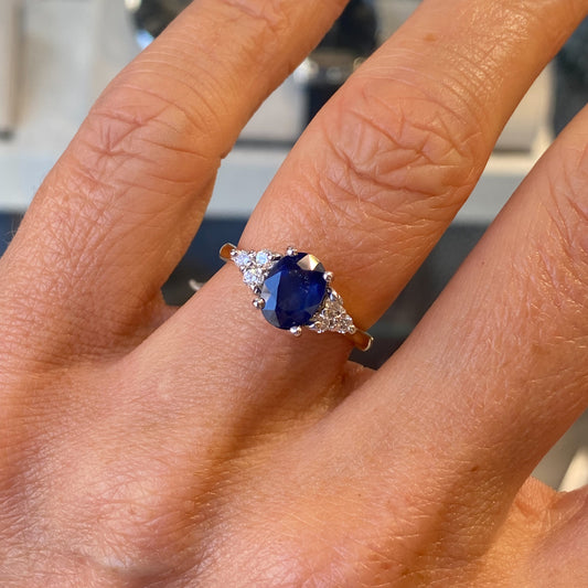 18ct Gold Oval Sapphire & Diamond Engagement Ring | 1.41ct + 0.20ct