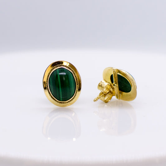 18ct Gold Oval Malachite Stud Earrings