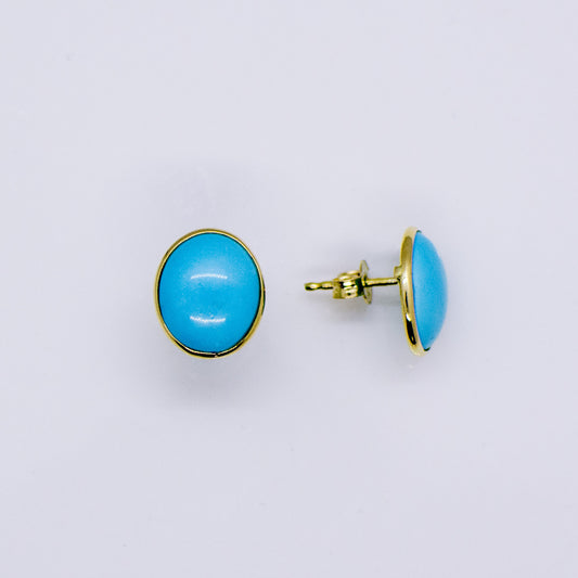 18ct Gold Oval Turquoise Stud Earrings
