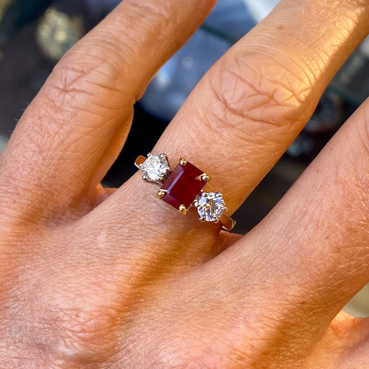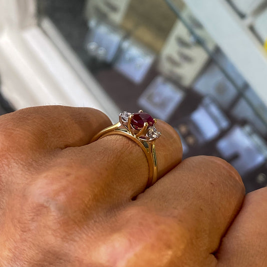 18ct Gold Ruby & Diamond Trilogy Ring
