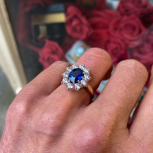 18ct Gold Sapphire & Diamond Diana Cluster Ring