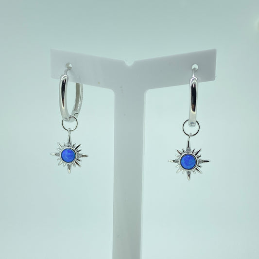 Silver Blue Opalique Star Charm Hoop Earrings