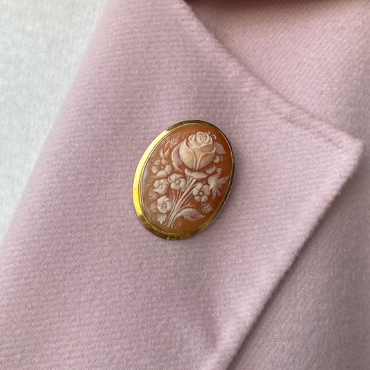 18ct Gold Shell Floral Cameo Brooch/Pendant | Small