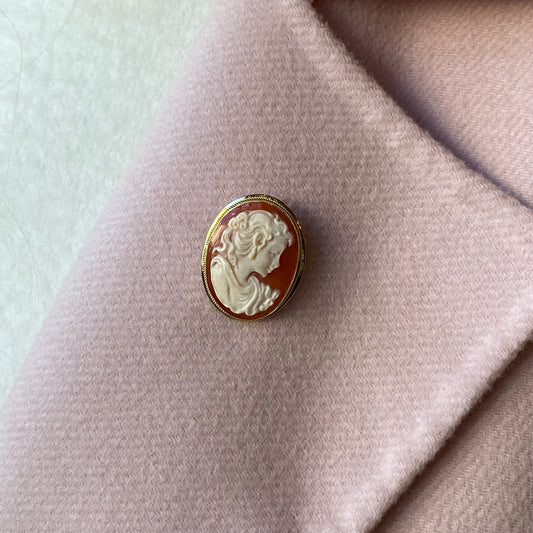 18ct Gold Shell Lady Cameo Brooch/Pendant | Small Medium