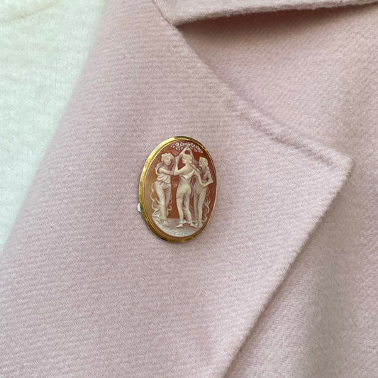 18ct Gold Shell Three Graces Cameo Brooch/Pendant | Medium Large
