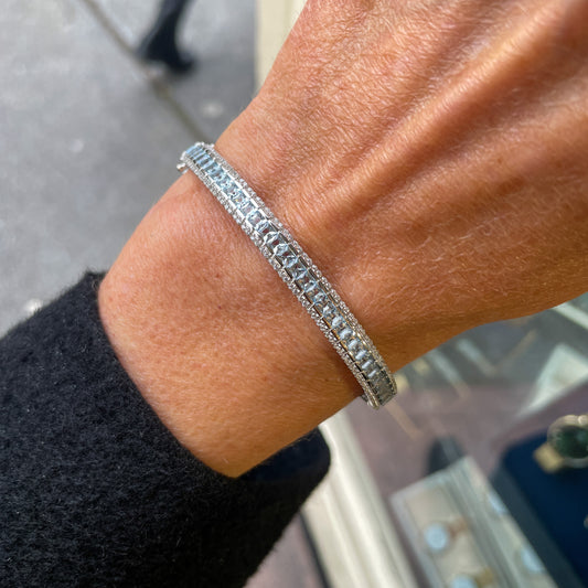 Silver Created Sapphire & CZ Tennis Bracelet | 18.5cm