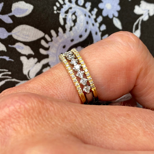 18ct Gold Three Row Diamond Ring - 0.73ct