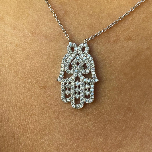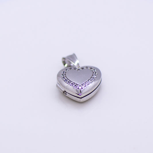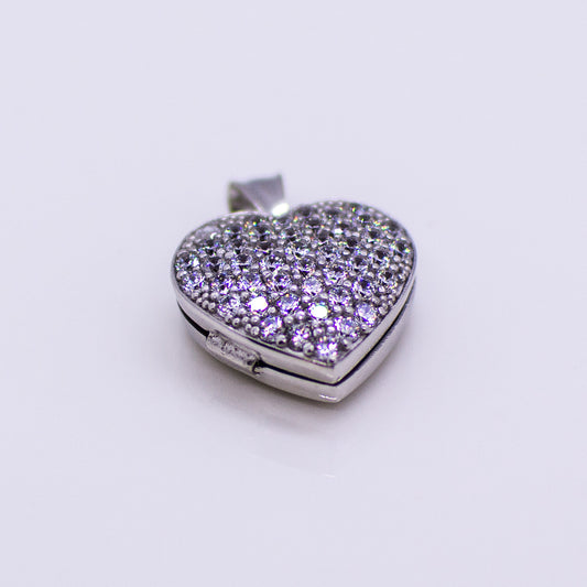 Silver CZ Heart & Open Pear Pendant Necklace | Rose