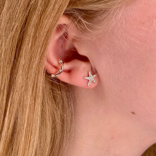Silver CZ Star Huggie Hoop Earrings | 9mm