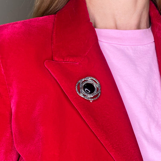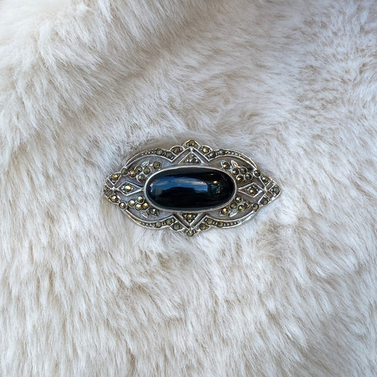 Sold outSilver Marcasite & Onyx Swirl Brooch