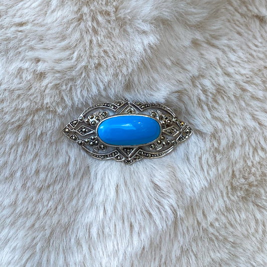 Silver Marcasite & Turquoise Vintage Style Brooch