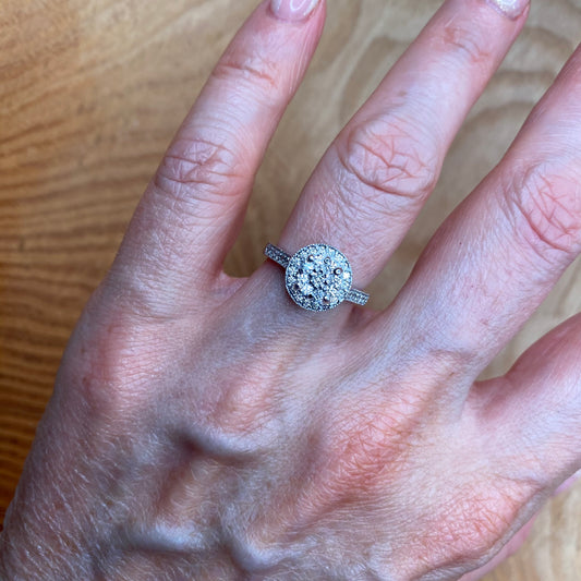 18ct White Gold 0.65ct Solitaire Cluster Halo Engagement Ring