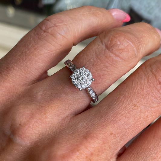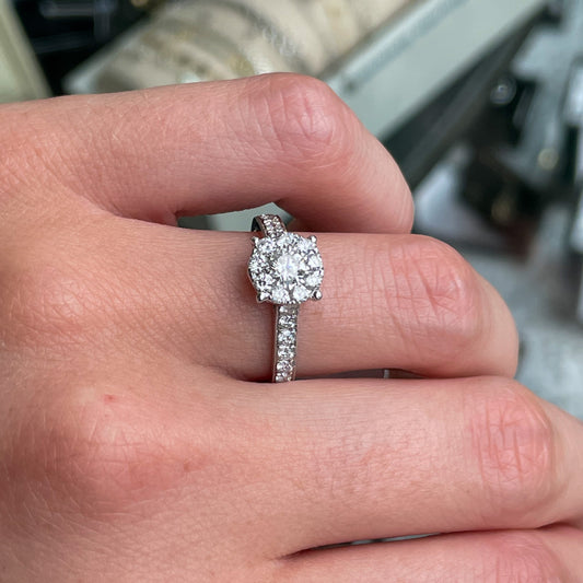 18ct White Gold 0.78ct GH SI2 Diamond Solitaire Cluster Ring | Diamond Shoulders