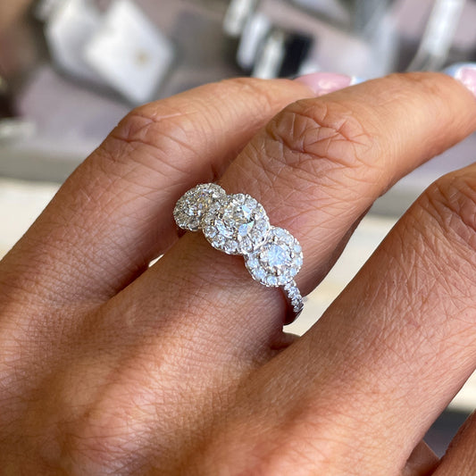 18ct White Gold 1.70ct Diamond Trilogy Garland Ring | Diamond Shoulders