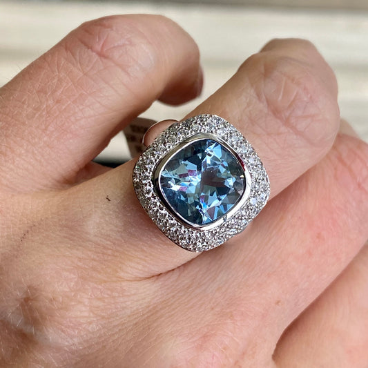 18ct White Gold Aquamarine & Diamond Pendant Necklace