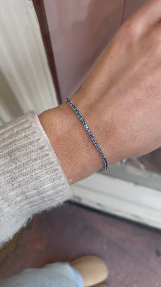 Silver Sapphire Blue 2mm CZ Tennis Bracelet | 20cm
