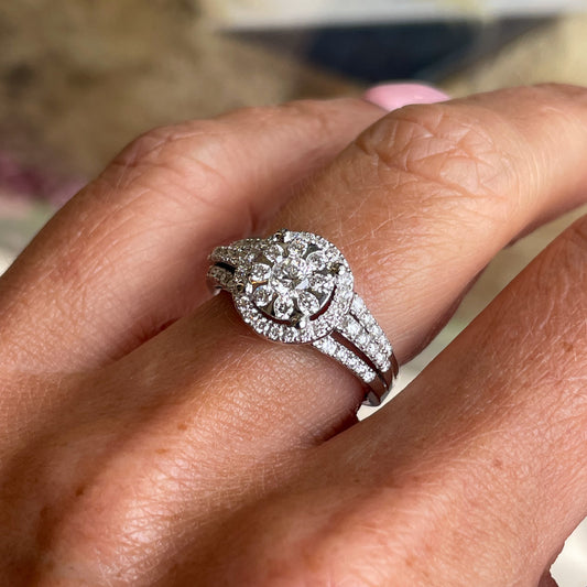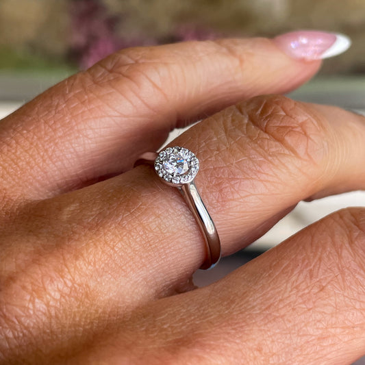 18ct White Gold Diamond Halo Engagement Ring | 0.27ct